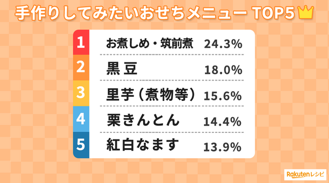 URL: https://recipe.rakuten.co.jp/news/article/2620/ 楽天グループ株式会社が運営するレシピサイト「楽天レシピ」は、「おせち料理に関するアンケート」を実施しました。