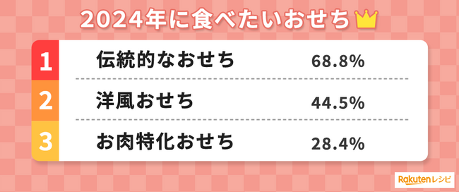 2024年に食べたいおせち1位は「伝統的なおせち」で68.8%。2位の「洋風おせち」と約24ポイントの差