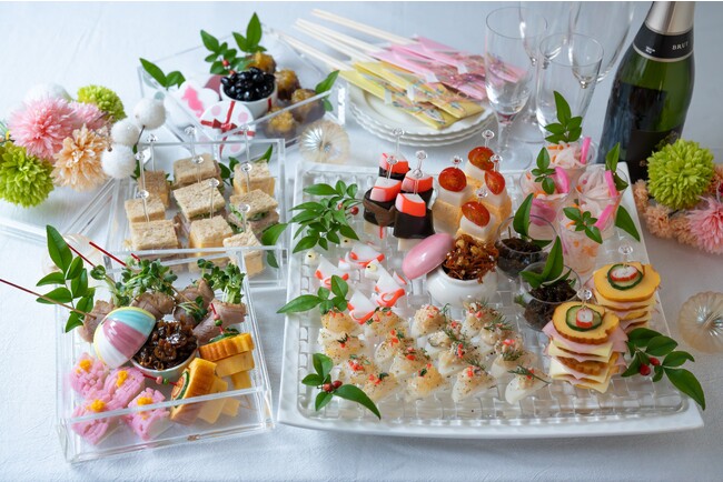 おせちの食材をピンチョス風に仕立てることで、オードブルのように楽しめるおせちですので