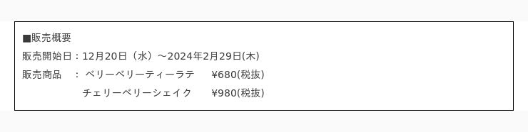 また、冬の時期にピッタリなティーラテは、フレッシュベリーのフルーティーな香りを閉じ込めマダガスカル産のバニラビーンズを使用したリッチなバニラクリームをトッピングしました。艶めくグラサージュベリーソースの赤と白のコントラストが可愛いドリンクです。