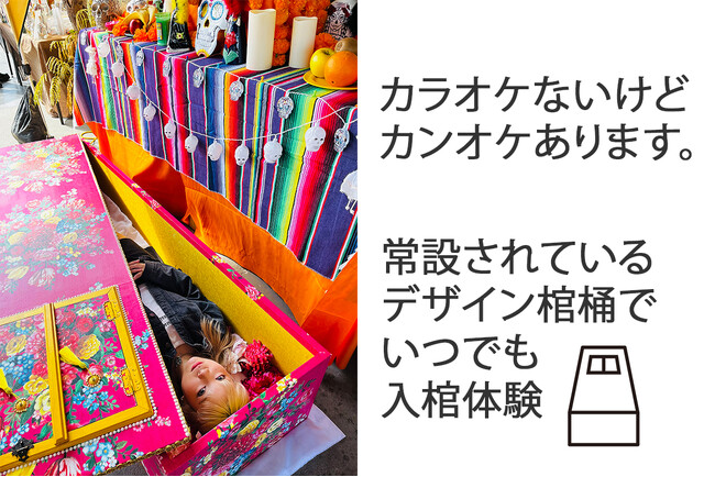 世界にたった一つのオーダーメイド棺桶を展示していますので、いつでも入棺体験が可能です。