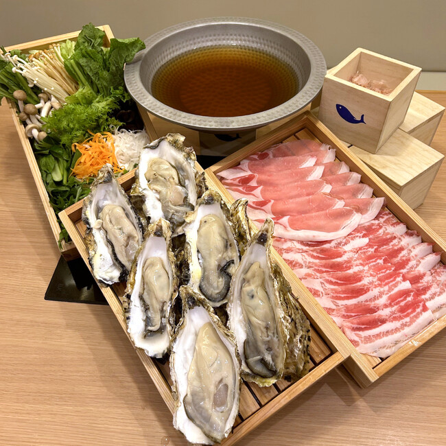 (季節の出汁しゃぶ・牡蠣(一人前 3ヶ)、黒豚 一人前100g、本日の新鮮野菜盛り)