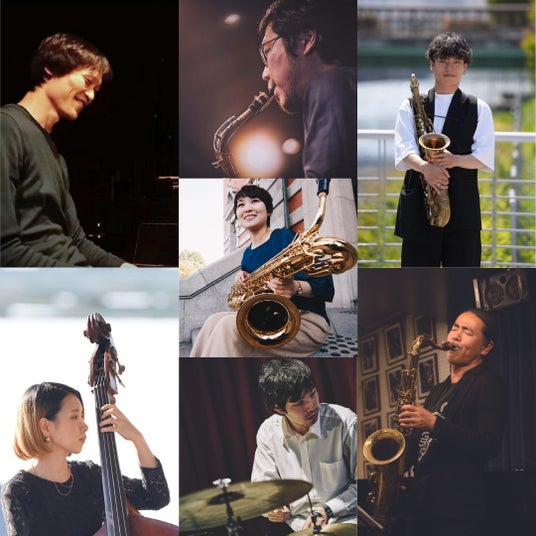 >>広瀬未来(trumpet), 米田あゆ(sax), 永田右京(sax), 礒野ノブキ(trombone), 李 祥太(piano), 米澤毅風(bass), 坪田英徳(drums)