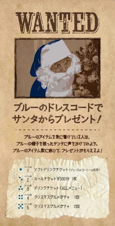 身に着けているブルーのアイテム数に応じて、サンタさんからプレゼントがもらえる!