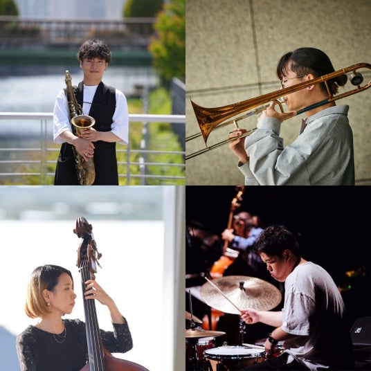 >>永田右京(sax), 細川涼介(trombone), 坂井美保(bass), 坪田英徳(drums)