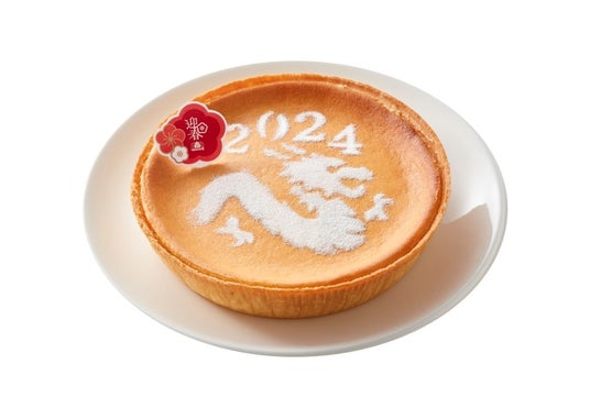 モロゾフ定番のデンマーククリームチーズケーキに、2024年干支の辰(たつ)のモチーフを描きました。いつもの一品に新年のお祝いのアクセントを添えてお届けします。