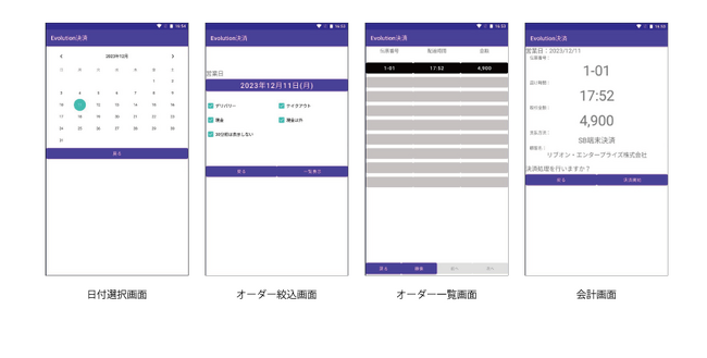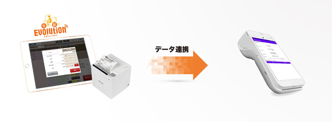 「Evolution決済」は、リブオン・エンタープライズが開発・販売を行っているデリバリーオーダーシステム「宅配Evolution」のオプション機能です。この機能では、「宅配Evolution」でオーダー登録した会計金額がモバイル型オールインワン決済端末内に搭載した「Evolution決済」アプリにシームレスに連携されます。