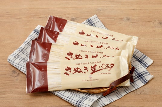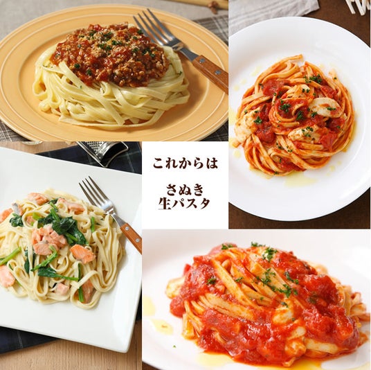 楽天市場のリアルタイム総合ランキングにて1位を獲得。女性の声を参考に、開発に1年以上かけて完成した、讃岐うどんが得意とする「コシ」のある新食感の生パスタです。