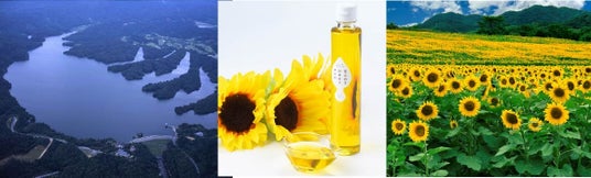 また、夏には約75万本のひまわりが町内全域に咲き誇るなど「ひまわりのまち」としても有名なまち。そのひまわりの種のみから抽出した「まんのうひまわりオイル」は、老化防止に良いとされる抗酸化作用のあるビタミンEと、悪玉コレステロール値を下げる効果があるとされるオレイン酸を豊富に含むまんのう名物の一つで、低温圧搾法でじっくりと搾ったスッキリとしてクセがないオイルです。2019年の優良ふるさと食品中央コンクールでは農林水産大臣賞を受賞しました。