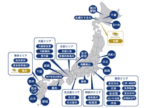当社では、「ホテルウィングインターナショナル」、「ホテルウィングインターナショナルプレミアム」、「ホテルウィングインターナショナルセレクト」「テンザホテル」の4ブランドを展開し、現在40店舗/5,180室を運営しています。(2023年12月21日時点)