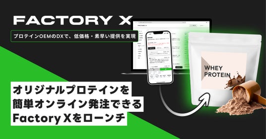 (本社:東京都新宿区、代表取締役CEO:後藤 康成、以下 アンパサンド)は、健康食品の開発を支援する株式会社ODD FUTURE(本社:東京都新宿区、代表取締役:長田竜介、以下ODD FUTURE)と提携し、オンラインでオリジナルのプロテインを発注できるプラットフォーム「Factory X」をローンチしました。デジタルトランスフォーメーション(DX)によるオリジナルプロテインの製造・販売の課題解決を推進してまいります。