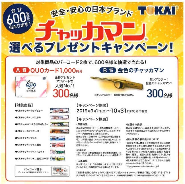 注目されること間違いなし!光り輝く金の多目的ライター「チャッカマンゴールド」を軸に豪華3弾連続キャンペーンを展開中!