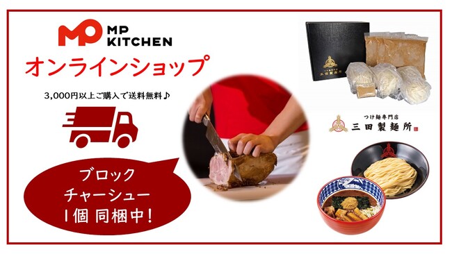 株式会社エムピーキッチン(本社:東京都渋谷区、代表取締役:村上竹彦)が運営する『つけ麺専門店 三田製麺所』は公式通販ショップにて、ご家庭用冷凍つけ麺を販売しております。ご自宅で過ごす時間が増える年末年始の時期、当ショップの冷凍つけ麺やチャーシューは大変オススメでございます。また、年内に冷凍つけ麺をご注文いただいた方限定で、先着50名様に冷凍チャーシュー250gを同梱しております。この機会にぜひご利用ください。