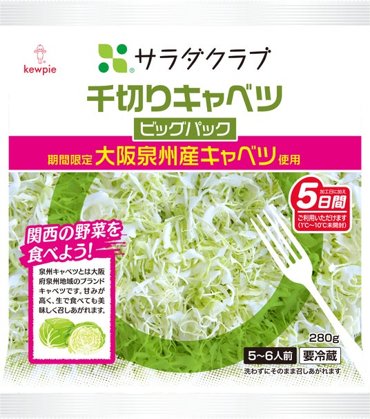 株式会社サラダクラブ(代表取締役社長:金子俊浩、本社:東京都調布市)は、2023年12月25日(月)~2024年1月31日(水)までの期間限定で、大阪府のブランドキャベツ「泉州キャベツ」を使用した「千切りキャベツ ビッグパック」を関西エリア限定で発売します。