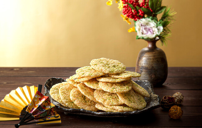 その鍛え上げられた目利きと技術との出会いにより織りなす、本格派せんべい。贅沢な風味をお楽しみください。