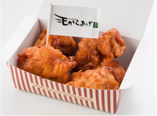 楽天モバイルパーク宮城では、「宮城県産 森林どりもも肉」100%使用し、味付けにも、仙台が誇る調味料「仙台味噌」を使用した、イーグルス唐揚げを販売しています。