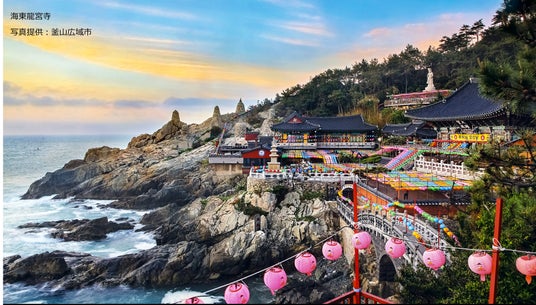 韓国では珍しい海辺の美しいお寺“海東龍宮寺”では、ひとつだけ願いが叶うといわれており、特に午後は多くの方で混雑します。ツアーでは午前中に訪れます。