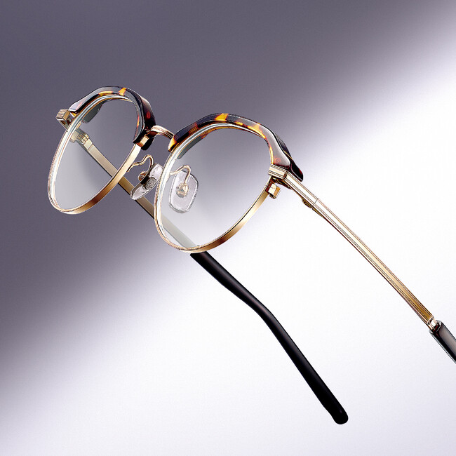 異素材のコンビネーションが映える特徴的なソフトリムのスタイル。女性が自然に掛けられる、柔らかな印象のミックスフレームです。メタルナイロールにプラスチックリムを組み合わせたフロントデザインと、前後2つのパーツにわかれたメタルテンプル。繊細な表情のなかに、女性が快適な装用感を得られる機能が込められています。ヘキサゴンとラウンドの2型展開。