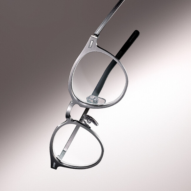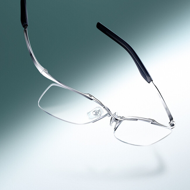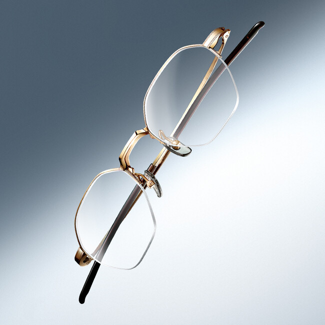 フォーナインズが培ってきた機能性、デザイン性、品質。それらすべてをさらに洗練させ、最高水準を目指すハイエンドラインに第2弾が登場。フォーナインズ独自の機構であるレイヤードブリッジ構造を用いたメタルサーモント。負荷を解消する機能部をブリッジ周辺に集約させることで、頭部を包み込む形状のテンプルと連動し、掛ける人にとって最適かつ安定したフレームバランスをもたらします。