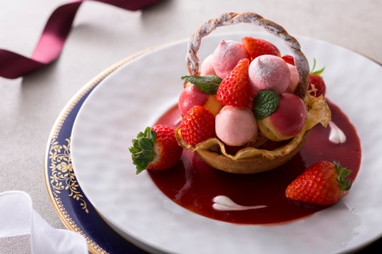 中でも、当ホテルの「大分県ベリーツ」を使用したメニューで初登場となるアシェットデセール(皿盛りデザート)「Panier de fraises(パニエ ド フレーズ)」は、クッキーで作ったバスケットにベリーツの他、スイーツが詰め込まれ、“苺狩り“をお皿で表現。