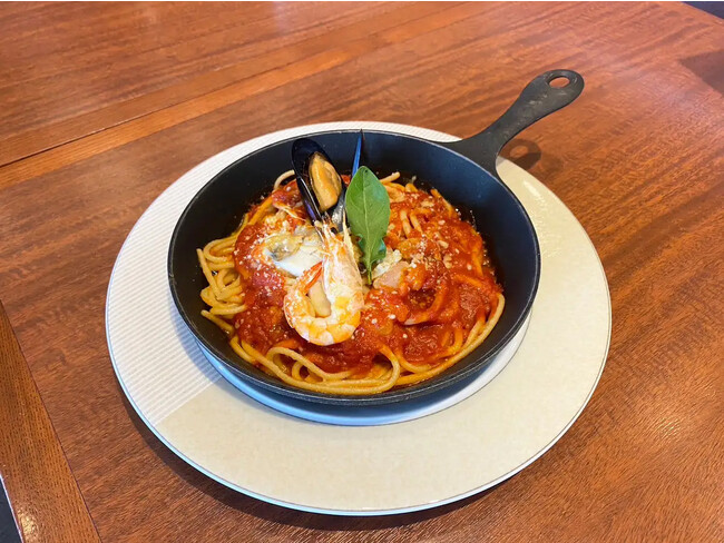 魚介たっぷりトマト系パスタ。お酒にも良く合います。