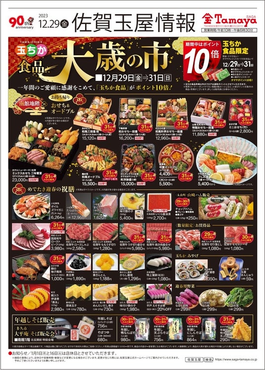 佐賀玉屋では12月29日(金)から31日(日)までの3日間、年末年始の食卓を彩る【大歳の市】を開催いたします。