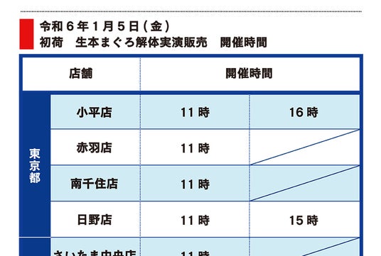 鮮魚チェーンストア「角上魚類」を展開する、角上魚類ホールディングス株式会社(本社:新潟県長岡市寺泊下荒町9772-20 代表取締役社長:柳下浩伸)は、2024年1月5日(金) 角上魚類 関東信越 全22店舗において、新年初開市の初出荷「伊根まぐろ」解体実演販売を開催いたします。