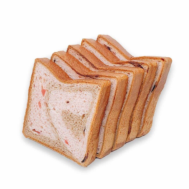 苺風味の生地とドライイチゴ・チョコチップを練り込んだチョコ生地をマーブル状に巻いた可愛らしい食パンです。