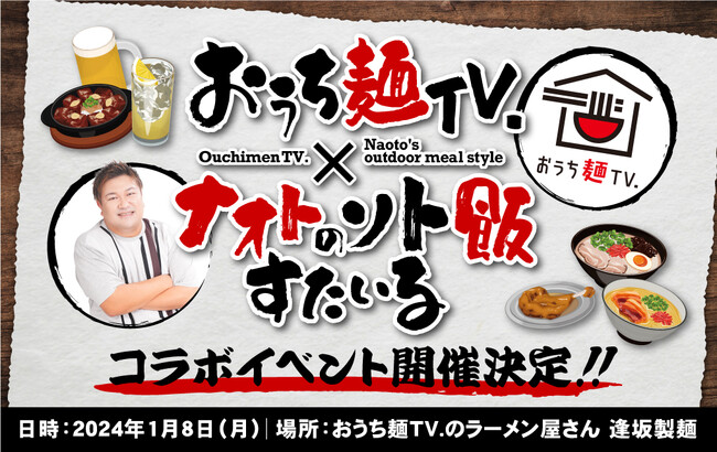 「おうち麺TV.」と「ナオトのソト飯すたいる」が初のコラボイベントを開催します!