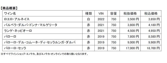 ※2バローロ・ヴィーニャリオンダ・エステル・カナーレ・ロッソは今回の入荷はありません