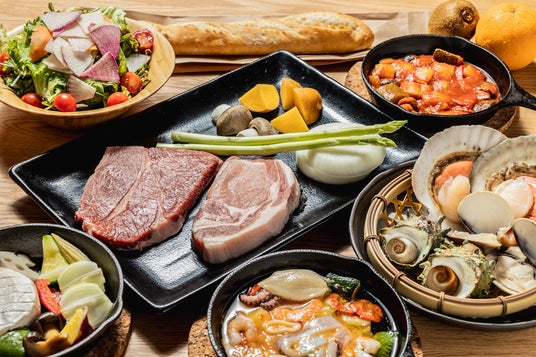 豊かな土壌の農作物、相模湾と駿河湾の海産物を提供する、2種のお食事をご用意しております。神奈川箱根エリアならではの質の高い食材を使用したお食事をお楽しみください。