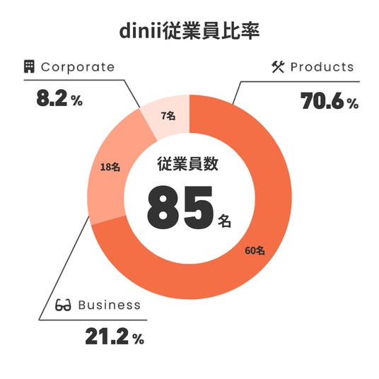 エンジニアや、データ分析、オペレーションチームなど、「ダイニー」のプロダクト開発・運用に関わるメンバーが従業員の7割を占め、常にお客様の声を取り入れながらアップデートを行っています。