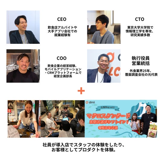 創業メンバーや役員が業界やプロダクトへの理解が深いだけでなく、社員が自ら導入店でスタッフ・顧客体験をすることで、飲食店やユーザーの視点をリアルに持ち続けることができています。