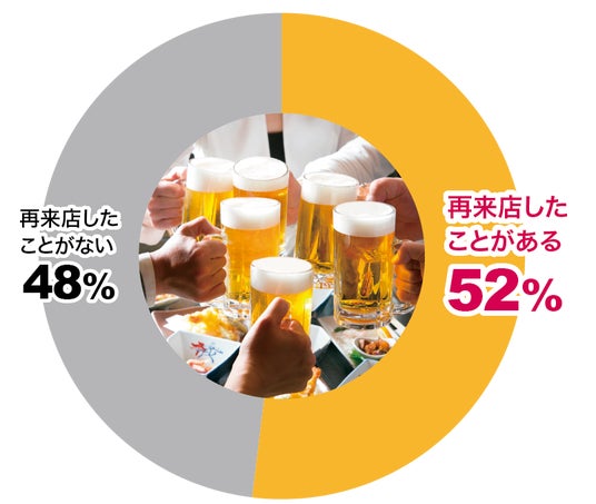52%のお客様が「宴会で印象の良かった店舗に再来店する」と回答。