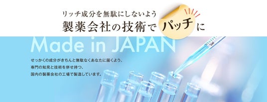 ボディパッチ商品は海外生産のものが主流ですが、日本人の多くが海外生産の商品について品質やその効果は少し不安、、、「貼るだけパッチ」はそんなお客様のご要望にお応えすべく、100%国内工場にて製造しています。