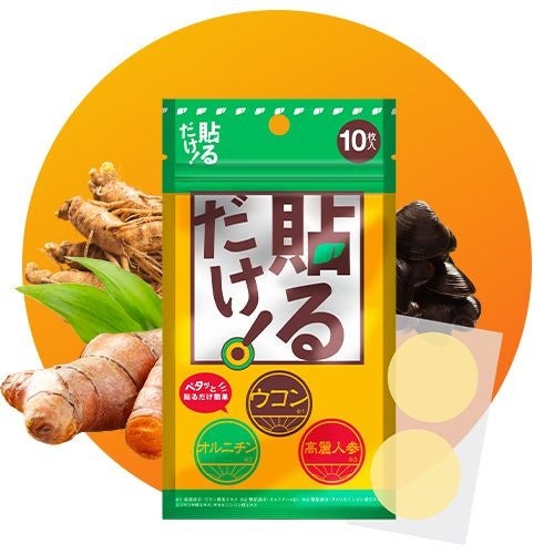 海外で”貼るサプリメント”と呼ばれ主流になっているシート型サプリメントに着目し、日本で最初に発売を開始した【貼るウコン】です。