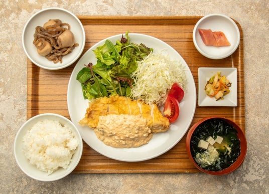 (メイン・副 菜・サラダ・小 鉢・お漬物・ごはん・お味噌汁)