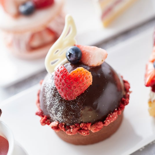 「苺スイーツフェア」では旬の真っ赤な苺を主役にした6種のスイーツをご用意します。ハート型のチョコやハートの形にカットした苺をトッピングしたケーキはバレンタインにぴったりです。また「ショコラカクテルフェア」では、チョコレートや苺のリキュールを使った可愛い2種のカクテルと、ホワイトチョコレート風味のノンアルコールカクテル1種をご用意します。
