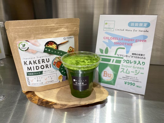 今回そのスムージーに「筑後産クロレラ」をプラスすることで、ビタミンB?2が補給できる “Super Greenスムージー”として新たに誕生しました。