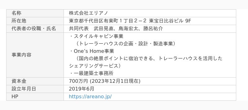 当社は、創業以来、スタイルキャビン事業(トレーラーハウスの企画・設計・販売・レベニューシェア事業)に取り組んでまいりました。このたび、新規事業として、Ones Home事業(トレーラーハウスを活用して地域一押しの絶景ポイントに、第二のふるさととして滞在できる権利を非代替性トークン(NFT)を活用して販売する事業)の取り組みをはじめています。