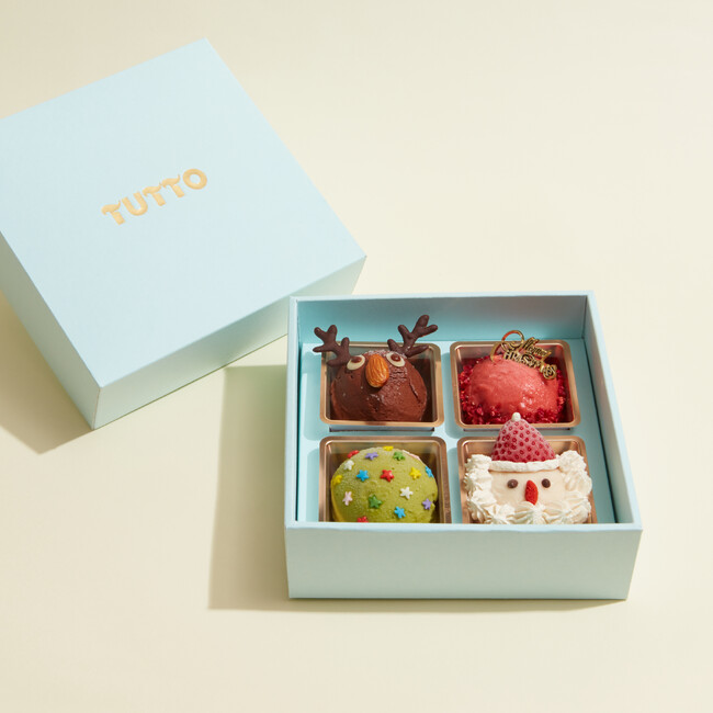 TUTTOのジェラートがクリスマス2種類のBOXになりました!トナカイやサンタクロース、クリスマスツリーなどのクリスマスのアイコンを4つのフレーバーで1つのBOXに。もう一つのBOXはクリスマスのオーナメントをイメージした少し大人なクリスマスBOXに仕上がりました。どちらのBOXもクリスマスパーティーやクリスマスのお手土産に喜んでいただけること間違いなし。TUTTOのジェラートで素敵なクリスマスをお過ごしいただけますように。