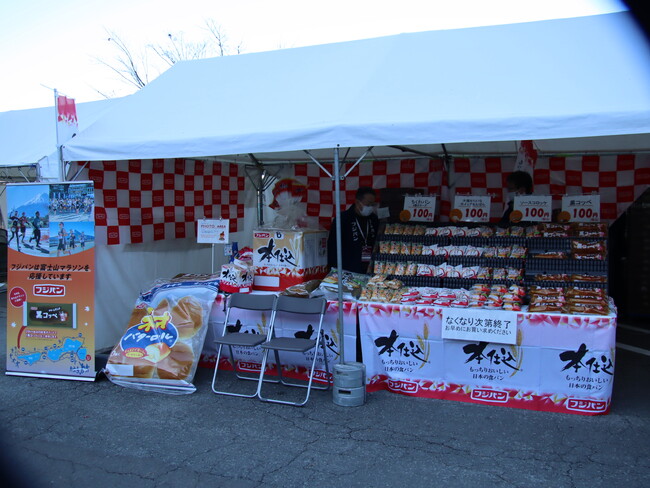 コースのひとつである、チャリティファンランでは、参加者1名につき223円(税込)を寄付し、富士山世界遺産の保全を推進し、保護、維持に役立てています。 フジパンはランナーの応援に、9.5Km、28Km、30.3km、39.1Km地点の給食ポイントにおいて人気商品の『黒コッペ』を計5,000個提供いたします。