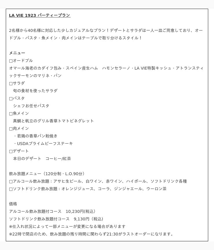 LA VIE 1923では大人数での集まりにぴったりな飲み放題付きのパーティープランが誕生いたしました。