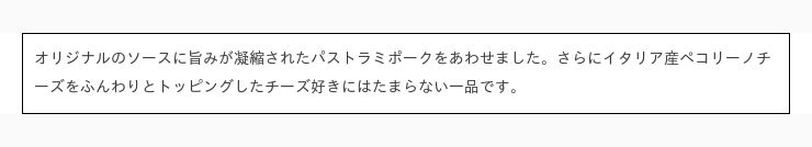 寒い冬にぜひ食べていただきたいフードメニューの「イタリア産チーズの本格カチョエペペ~ペコリーノチーズ使用~」は、”チーズが主役”のパスタです。カフェ・ド・クリエオリジナルのソースに、パルメザンチーズとアクセントになる粗挽きのブラックペッパーを合わせ、旨みが凝縮されたパストラミポークをあわせました。イタリア産ペコリーノチーズをふんわりとトッピングしたチーズ好きにはたまらない一品です。