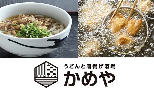 創業から50年、地元食材へのこだわりと独自の製法でうどんを提供し続けてきた「かめやうどん」。その理念を継承した新業態店舗「うどんと唐揚げ酒場かめや」では、うどんだけでなく唐揚げ、鶏料理、地酒などの酒場スタイルのメニューを幅広く展開しております。