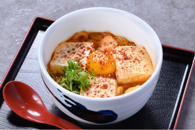 柔らかい絹ごし豆腐と卵が辛さをマイルドにして、バランスのとれた味わいになります。辛さがもの足りない方は、七味でアレンジしてお召し上がり頂けます。