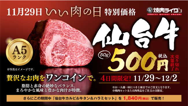 ※11月29日~12月2日の期間は黒毛和牛カルビの販売はしておりません。