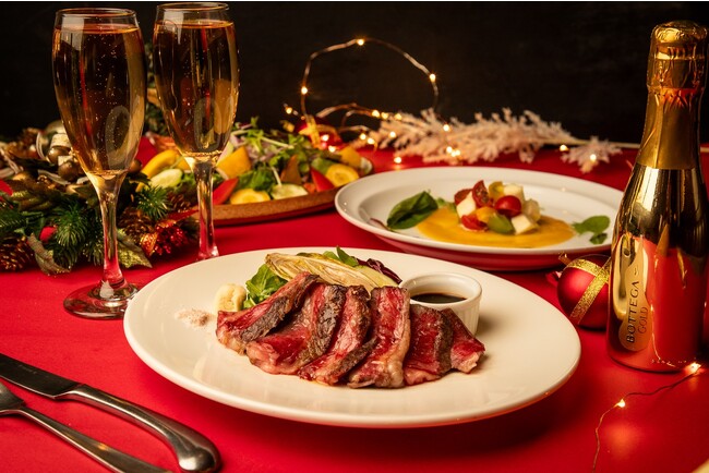 「希少部位“カイノミ”の牛ステーキ」や「ムール貝の白ワイン蒸し」「トリュフが香るブリュレチーズフォンデュ」などクリスマスにぴったりのお料理に加え、このプランだけのXmasデザートと、全9品の魅力的なプランをご用意しました。