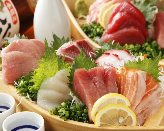 市場直送の鮮魚も「酔っ手羽」の自慢です。マグロ、〆鯖、サーモン、ホタルイカ、タコなど、新鮮な旬のネタ仕入れています。