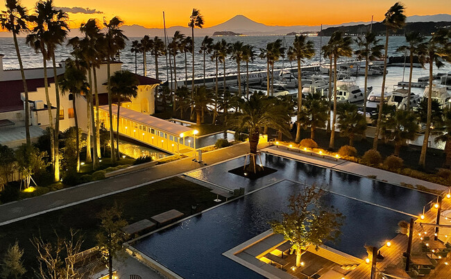 全11室が50平方メートル 以上のオールスイートの客室から海を望む富士山ビュー『マリブホテル』の宿泊に、リストランテAOの特別クリスマスコースをディナーでお愉しみいただける、特別な日をゆったりと過ごせる宿泊プランをご用意。客室ごとに異なる眺望とスタイルの違う上質な空間では、「何もしない贅沢な時間」を味わえます。ヤシ並木や富士山、マリーナを望むオーシャンビューの客室で、刻々と移り変わる幻想的なサンセットと心地良い波音を聞きながら、おふたりだけの時間をお過ごしいただけます。特別な1日を非日常空間でご堪能ください。
